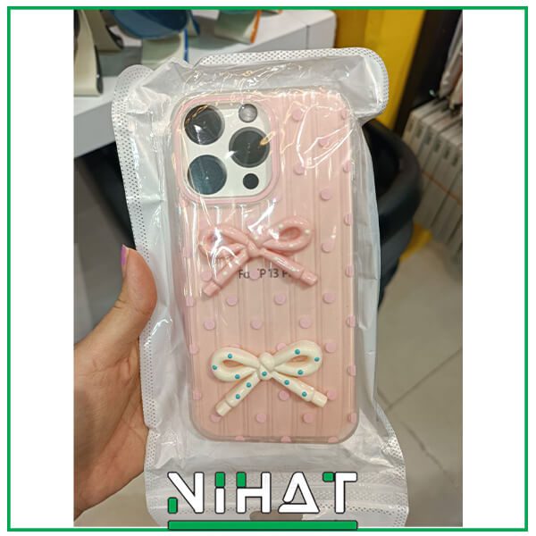 گارد گوشی پاپیون صورتی سفید از آیفون 13 تا 16 پرو مکس